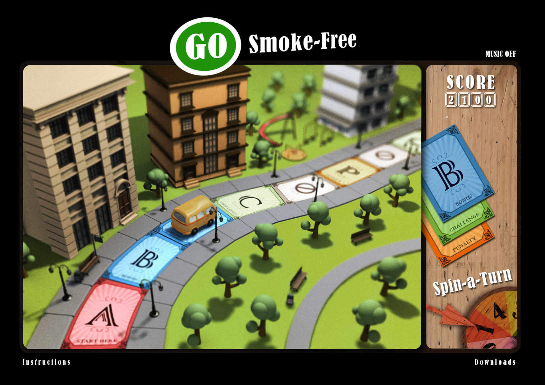 Go Smoke-Free is a prototype digital boardgame filled with mini-games. You play through the a series of event and complete mini-games to move ahead.
